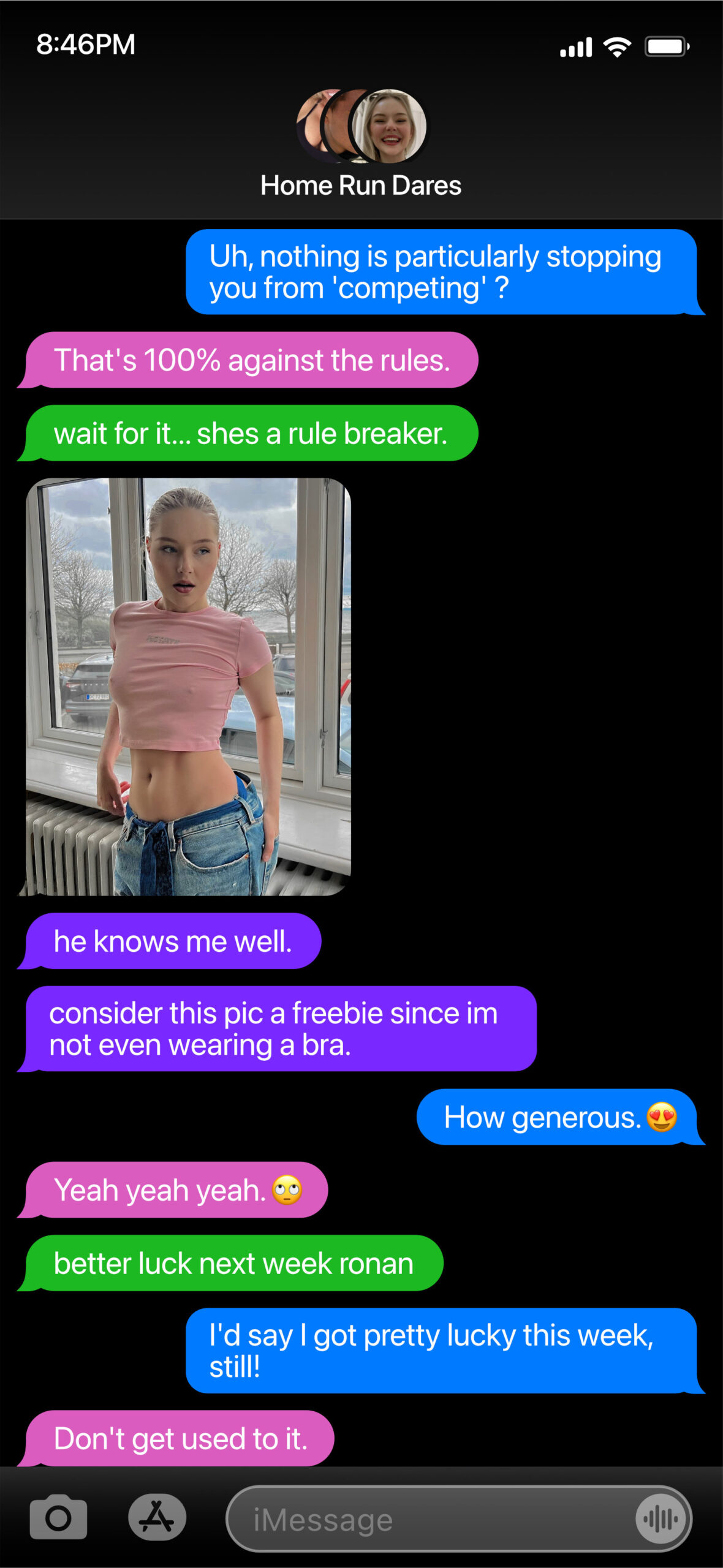 After a battle of words on the baseball diamond, Ronan gets into a fight with another heavy-hitter with a sexual history that is too close to home. After some more words shared over a beer, they come to an arrangement to settle their score.