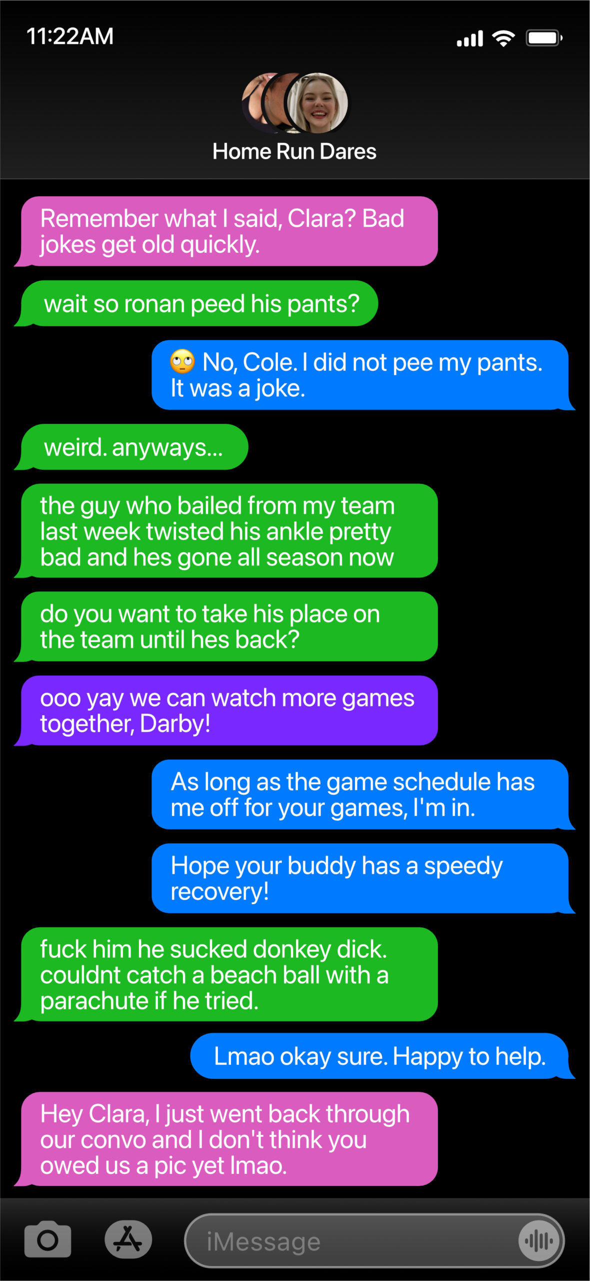 After a battle of words on the baseball diamond, Ronan gets into a fight with another heavy-hitter with a sexual history that is too close to home. After some more words shared over a beer, they come to an arrangement to settle their score.
